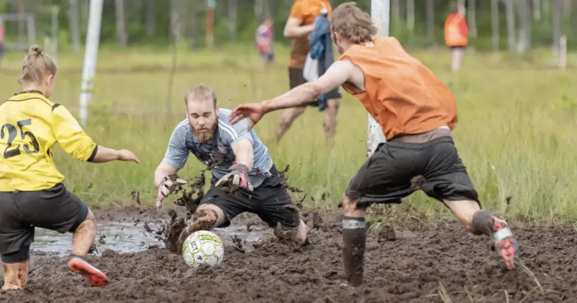 Wyobraź sobie mecz piłki nożnej rozgrywany po kolana w gęstym fińskim błocie. Gracze regularnie tracą buty w bagnistej mazi, a każdy sprint zamienia się w komiczny pokaz ludzkiej determinacji. Zasady spalonych nie obowiązują — głównie dlatego, że jakikolwiek ruch do przodu jest już sam w sobie sporym osiągnięciem. Turnieje Suofutis przyciągają drużyny z całego świata, a atmosfera na boisku przypomina połączenie festiwalu muzycznego z wrestlingiem.