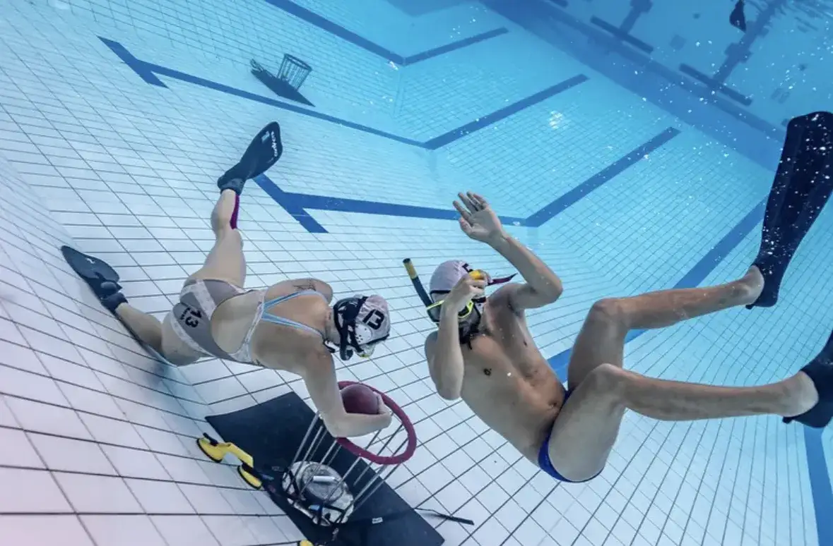 - Podwodne rugby — popularne w Norwegii, Szwecji i Danii, rozgrywane jest na dnie basenu z piłką wypełnioną słoną wodą, którą trzeba umieścić w koszu rywala, nurkując na wstrzymanym oddechu.
